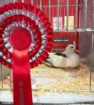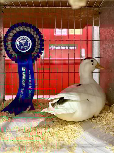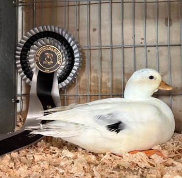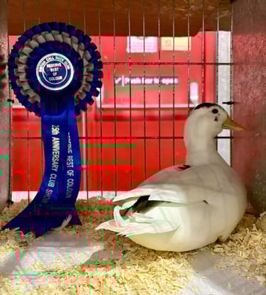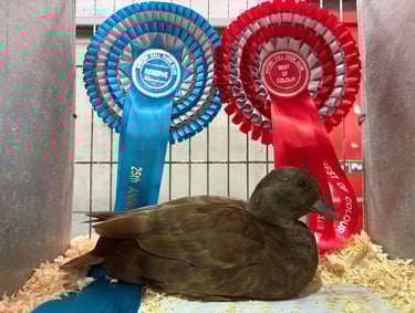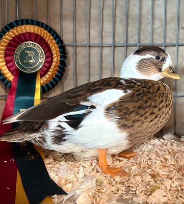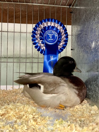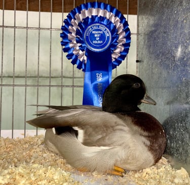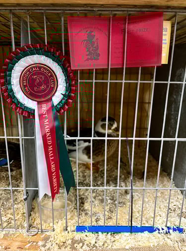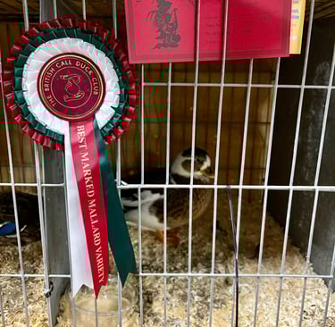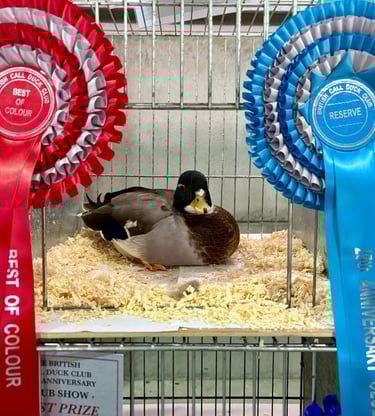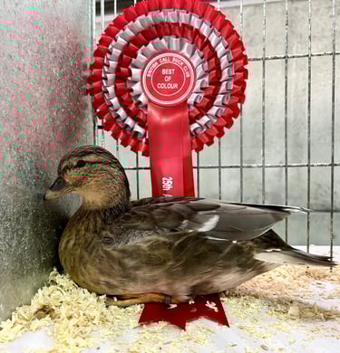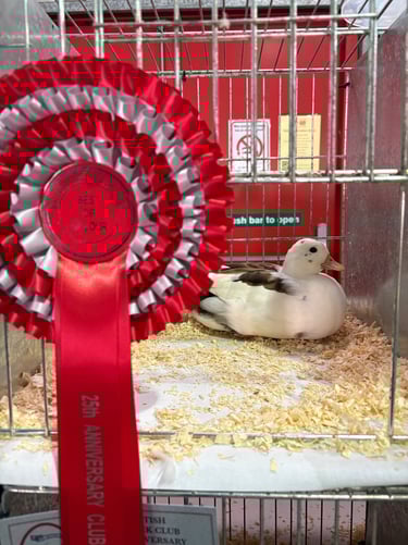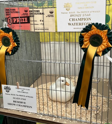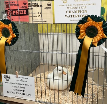 Had a successful day at Penistone Show today. Won all 4 Call Duck classes and had Best Waterfowl and Reserve Show Champion with a white drake.