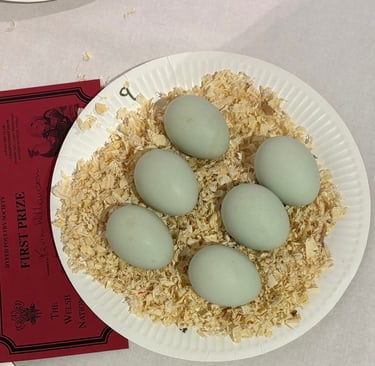 A double whammy this weekend with the Welsh National Poultry Show on the Sunday. Winning Best Marked Mallard Variety with an adult duck and Beat Marked Variety with a young Blue Magpie duck.